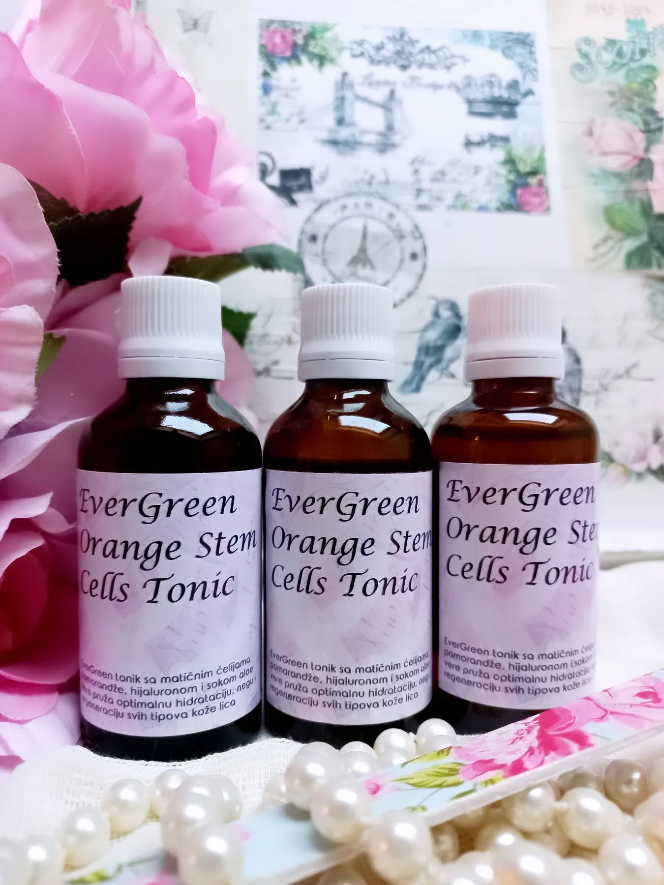 Matične ćelije pomorandže obnavljaju i poboljšavaju kvalitet kože, utiču na sintezu kolagena, kao i na opšti izgled kože. Zbog toga se koriste u hidratantnim proizvodima, intenzivnim tretmanima lica i proizvodima za prevenciju starenja kože. U kombinaciji sa aloe verom i hijaluronom, ovaj tonik pruža optimalnu hidrataciju, negu i regeneraciju svih tipova kože lica. EverGreen tonik sa matičnim ćelijama pomorandže se nanosi na očišćeno lice, pre dnevne i noćne nege. Posle ovog tonika koža je glatka i svilenkasta na dodir.